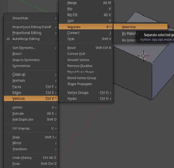 Si ahora los tienes unidos y los quieres deshunir, entras en modo edición (Edit Mode) y seleccione la pieza o tornillo (los vértices) y presionas letra P > Selection