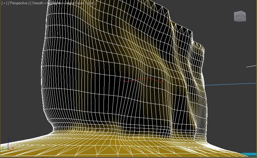 Como pueden ver en la sucesión de imágenes en acercamiento, la malla están suave, sin embargo, en la renderización me salen unas anomalías que rompen la suavidad del muro, como si yo hubiera hecho un Hinge From Edge (o extrusión rotada de una cara sobre uno de sus lados como si fuera una bisagra). Desde ya, no hice ninguno.