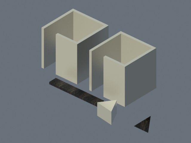 El problema es que cuando genero un volumen desde line (hago la forma) - extrude (volumen) luego al aplicarle un material y renderizar no lo expresa. No es así el caso cuando lo genero desde un box editado o no (en la imagen están todos con el mismo material, pero con diferentes procesos de generación).