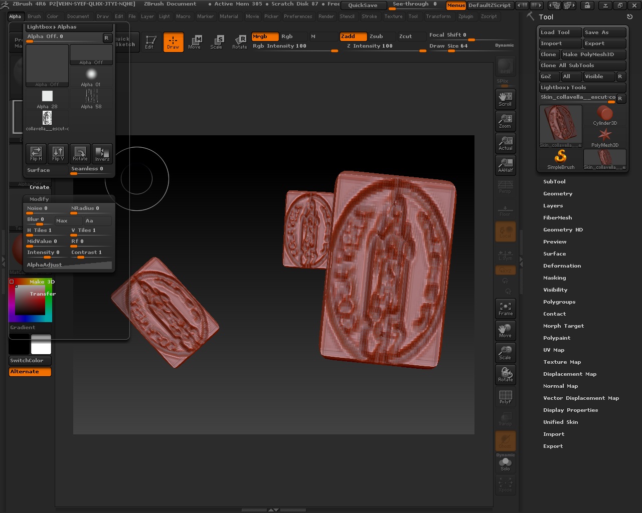 Hola a tod@s, quiero importar un logotipo al ZBrush y que se convierta en modelo para ya retocarlo, la definición técnica no sé cómo se llamaría, por a qui encontré que lo hacéis con panel Alfa al botón make 3D y se crea bien lo puedo modelar, pero se ve muy mal con muy poco detalle solamente de aprecia un poco la silueta, en ese mismo panel de alpha modifique de mil maneras las barras y nada, aparentemente sigue igual, la imagen es 1770x1800os adjunto unas fotografías para qué veáis si lo estoy haciendo bien o es que no se puede realizar, muchas gracias.