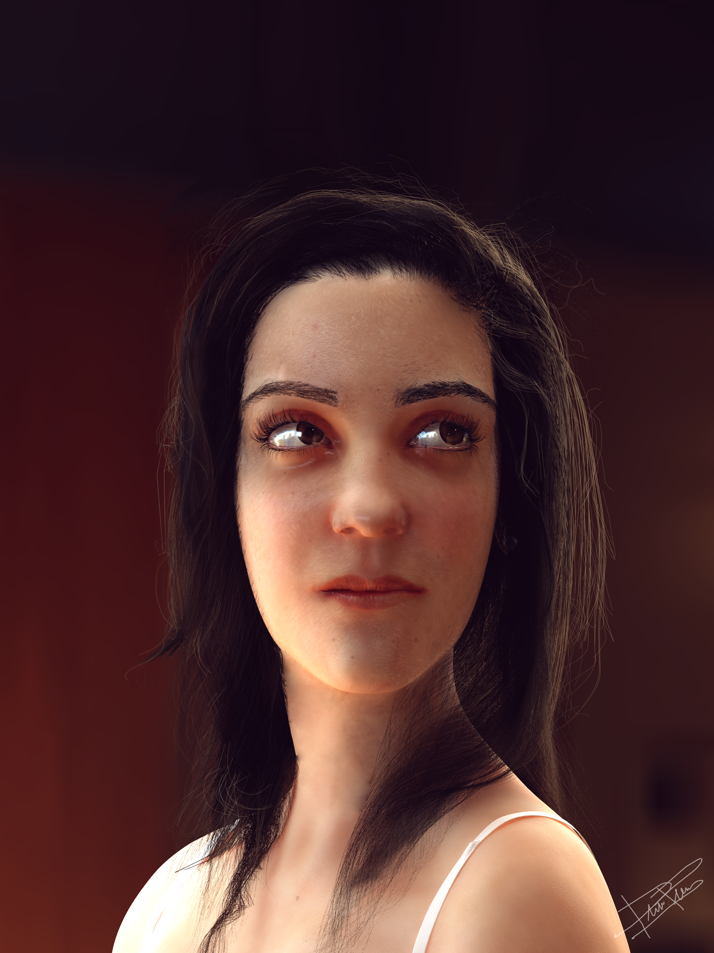Es mi hermana.modelo base en 3dsmax retocado en ZBrush y a través 3dsmax para él render.