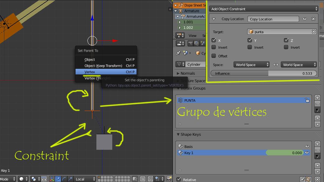 He pasado los objetos al LAYER2 y ahora los voy pasando al LAYER1 según quiero que vayan apareciendo. Pues bien, una grúa qué ya la tengo en el LAYER1 le he incluido un gancho con dos cadenas que son las que enganchan una viga para él izado de esta, es problema lo tengo en lo siguiente: selecciono todo (grúa, gancho y cadenas) en un frame pongo una clave de posición, muevo lo seleccionado a otro punto y pongo en un nuevo frame otra clave de posición, pues bien, de doy al play y sólo se mueve la grúa, los objetos nuevos(gancho y cadenas) no se mueven. ¿Porqué ocurre esto?