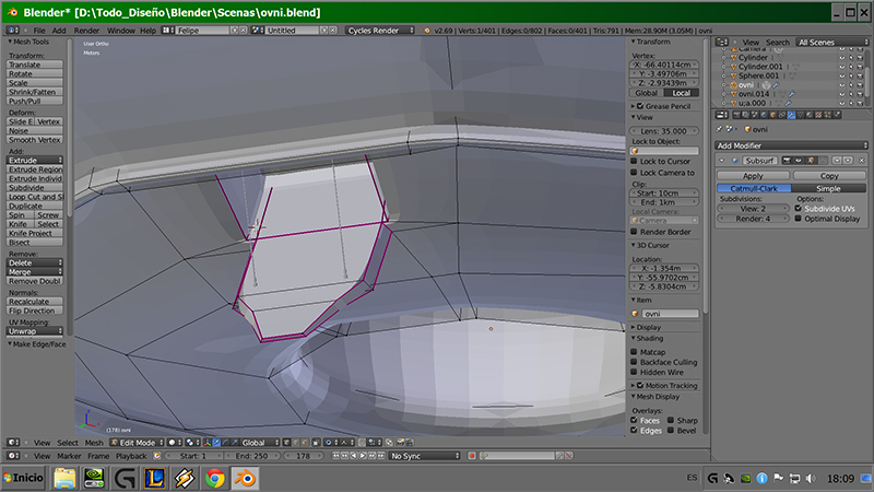 El ovni en general está hecho para una subdivisión, pero voy a hacer que se abra una compuerta qué me gustaría no este tan subdividida, pero es la misma malla.