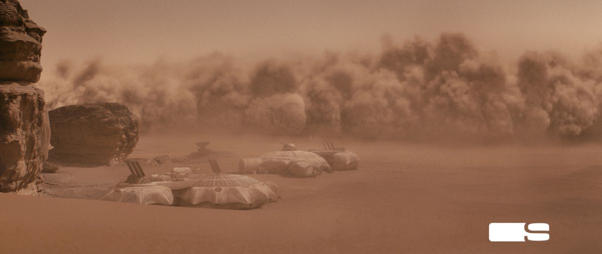 El polvo, el polvo, el polvo : Los personajes se encuentran con una imponente tormenta de polvo en Marte. La escena de la pantalla se veía como las tormentas de polvo del mundo real, para tener una referencia directa, pero se adaptó la escena para dar sensación de la baja gravedad y baja presión en el planeta alienígena. En la postproducción, los diseños iniciales se hicieron en placas de estilo animatic de baja resolución.