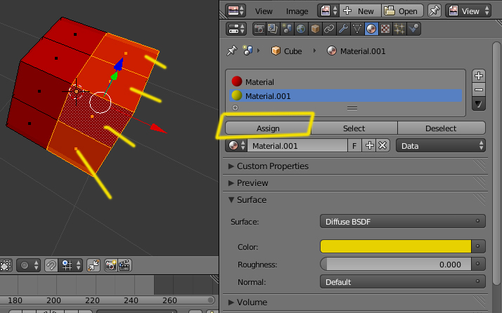 Luego seleccione las caras o grupo de vértices y presionas el botón ASIGN para asignar ese color (el que tengas en ese momento seleccionado) a esos vértices o caras.