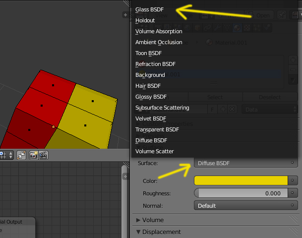 Y enlazas los dos pinchando sobre la bolita verde de un nodo al otro (de BSDF a Surface).