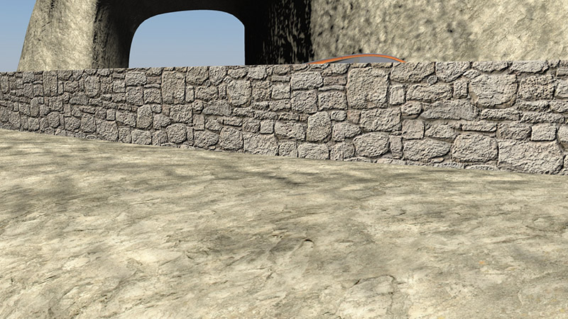 He pensado que podía ser eso, con el muro que se ve en las imágenes también me pasaba lo mismo, así que, lo lleve al UV layout, y saque las UV de ahí, a ver si se solucionaba, pero nada. De todas formas, tengo pendiente probar a hacer lo mismo con la montaña, a ver si hay suerte y solucióno el tema.