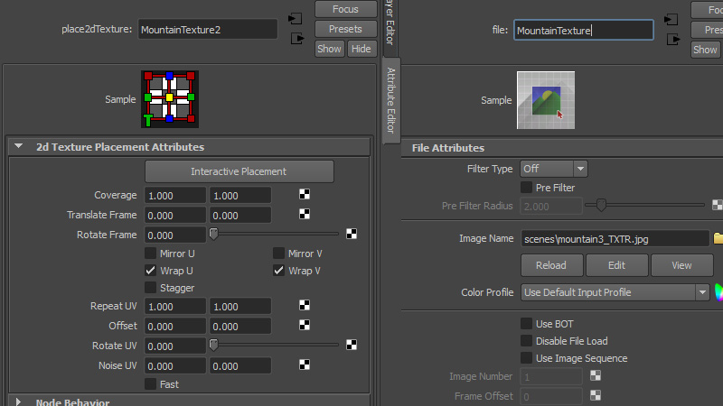 He buscado soluciones y di con que podía ser que tenía qué poner el Filter en Of, pero ni así. Ya no sé qué puede ser. Si al modelo le aplico una textura seamless, se ve bastante mejor, pero quiero hacer un plano general donde se ve parte de la montaña y se nota las repeticiones. Tengo un muro que bordea toda la curva, y esa textura se ve bien, es una textura seamless de unas piedras que he encontrado, pero en cambio sí le aplico una textura pintada en Adobe Photoshop, me pasa lo mismo que con la montaña. A ambas texturas en el hardware texture le puse el texture resolution en highest, porque leí que así se podría solucionar, pero tampoco.