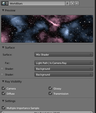 Lo de poner el World, se puede hacer de dos maneras, pero yo suelo utilizar siempre la ventana de nodos, que creo que así no te complicas más la vida, que ya es bastante complicado el asunto de los materiales en Cycles.