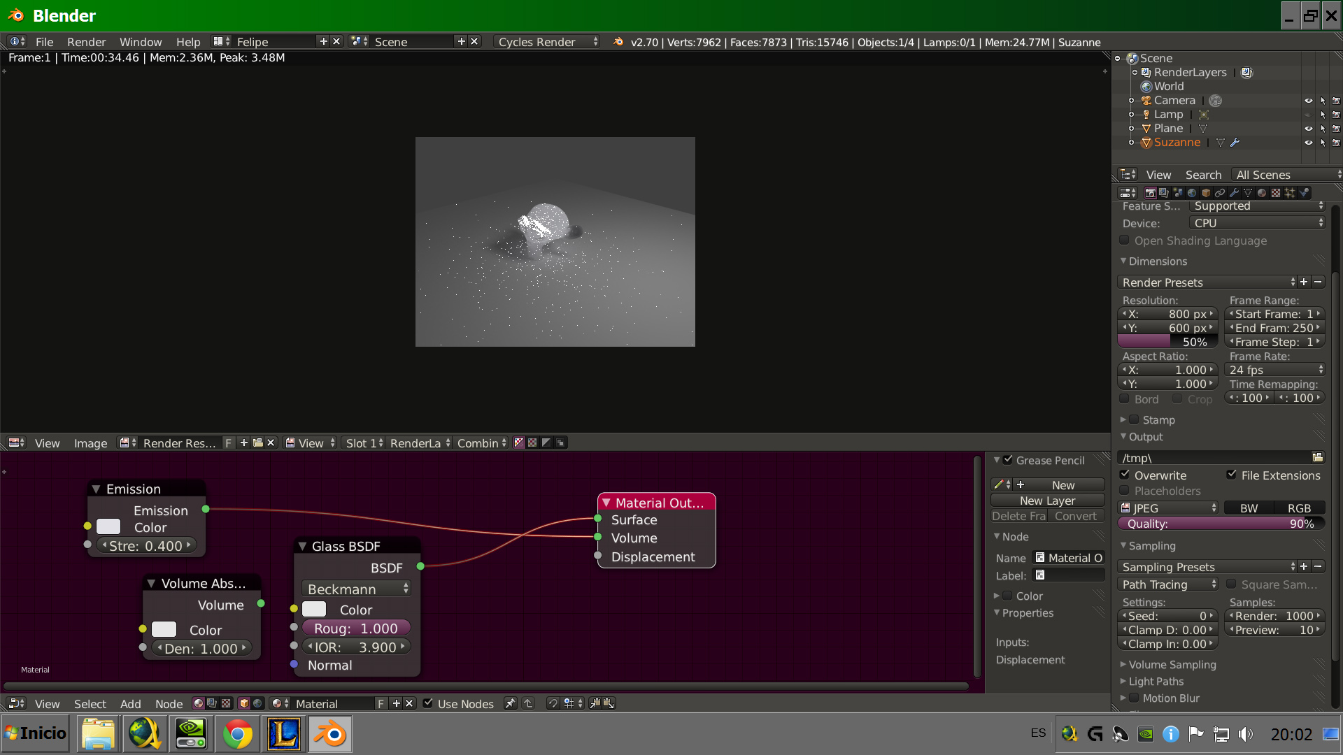 Los nodos están puestos según un tutorial en inglés que vi ayer en Blender coki, pero al tío le salía mucho mejor con 10 pass en preview