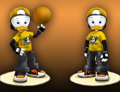 Las únicas texturas que use fueron unas texturas de mezclilla qué encontré en la red y el logotipo de los Mighty Ducks que se ve en su pecho. El logotipo necesita de algunos ajustes para encajar con la camiseta.