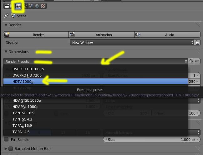 En Render DIMENSIONS tienes que elegir el formato de salida.
