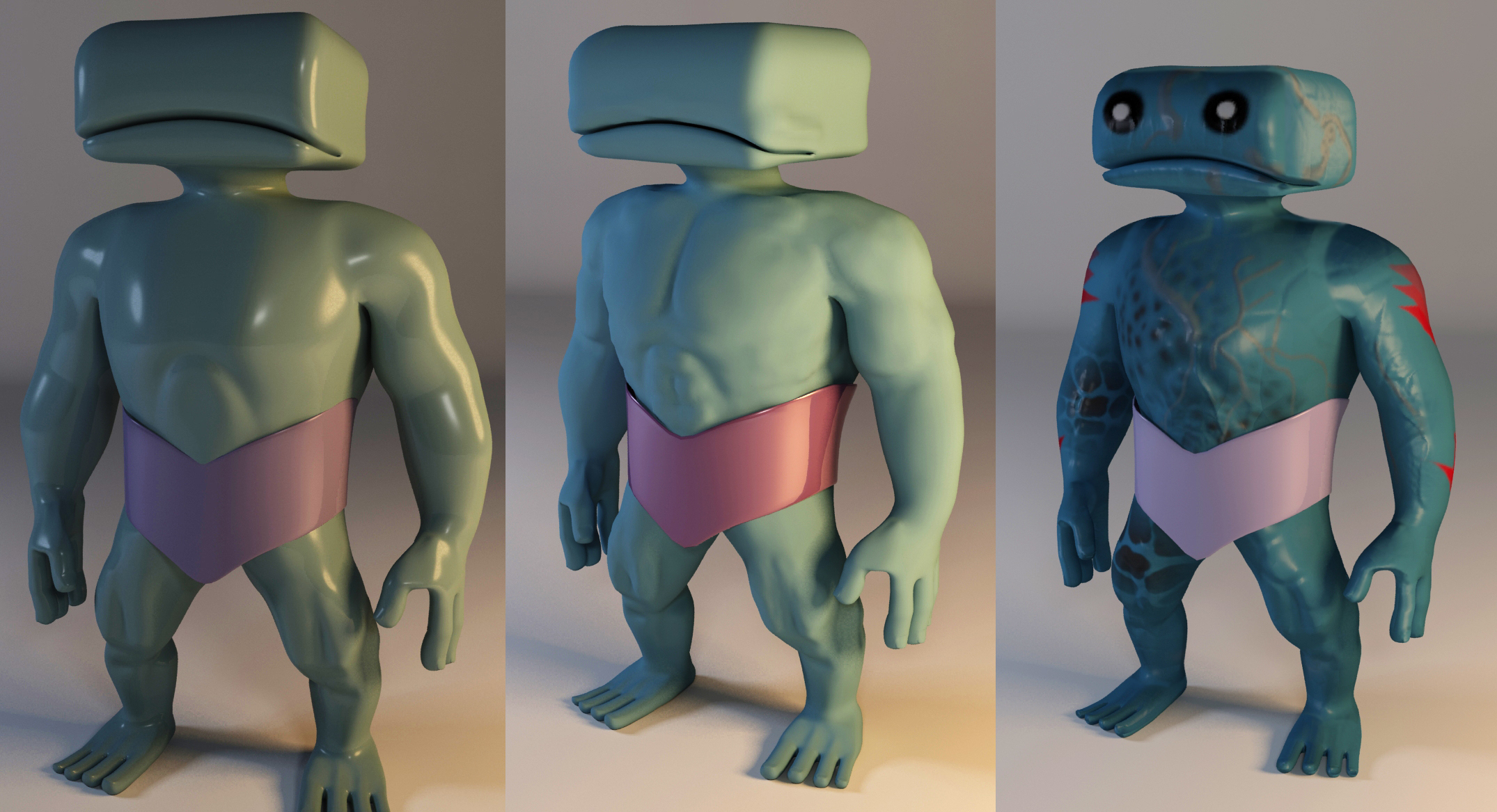 Hola aquí pongo 3 versiones de este modelo, la primera imagen es modelado en 3ds Max, el segundo fue modificado en ZBrush y exporte el displacement map a 3ds Max, y en la tercera lo hice a mi gusto texturizado y normal map en ZBrush, espero os/les guste, saludos.