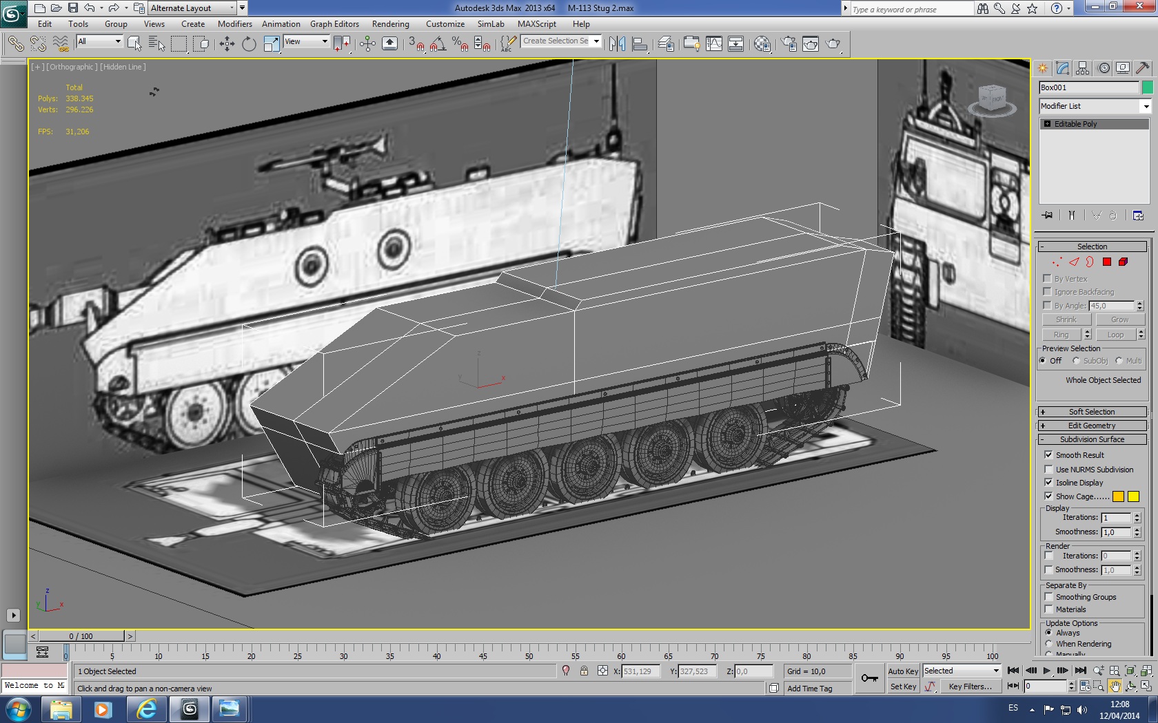 Pues porque al carecer de torreta y siendo la barcaza simple, la hice en una mañanita, el resto sólo ha sido colocar elementos de otros M-113. Las orugas usan todos las mismas, los visores y tapas son las mismas, sólo he modelado la puerta de atrás, el cañón y la barcaza, el resto es reciclado. Luego le he añadido más cosas que el prototipo no tenía o tenía en un sitio inadecuando. Por ejemplo, los fumigenos, son los del Atilgan, ya que no pueden ir en otro sitio sin estorbar más que ahí, los eslabones de repu esto (en la imagen del prototipo) estaban en lo que sería el capot del motor, y a ver quien es el guapo que levanta esa tapa, así que, los he colocado donde los llevan todos. Luego la toma de reciclaje del aire trasera, pues porque todos la llevan ahí, y los ganchitos para sujetar lonas, redes, mochilas etc, es decir ponerle algo para qué parezca normal No le he puesto las herramientas, pues no sé por qué, pero así ya está majete.