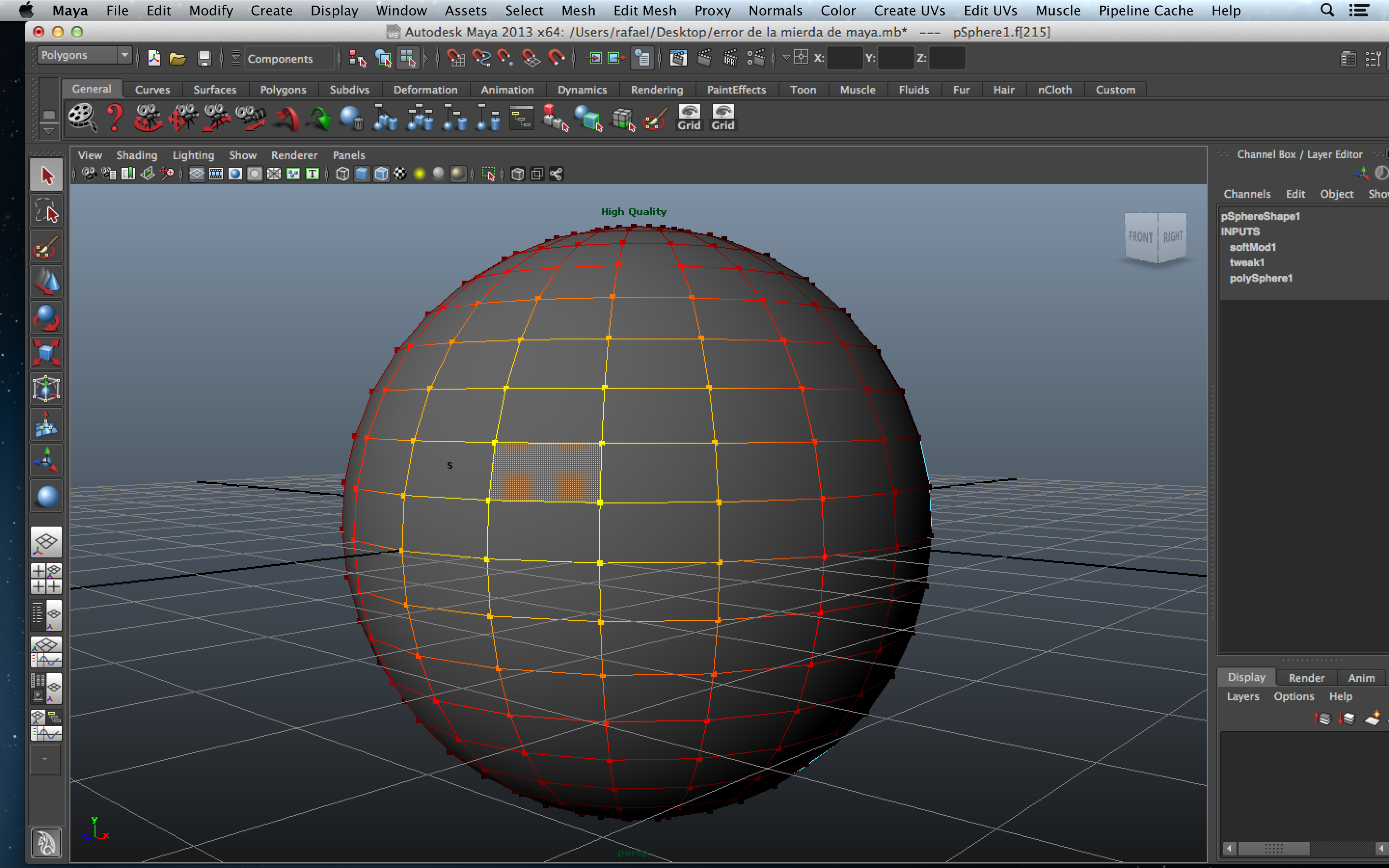 Hola, estoy comenzando a usar Maya y me he encontrado con un problema, al intentar seleccionar (face, ertex, edge) en cualquier polígono en lugar de seleccionarse solo mi elección se pone de color rojo gran parte del polígono, lo que me evita poder seleccionar simplemente lo que quiero. Adjunto fotografía. Si alguien puede ayudarme estaría muy agradecido. Un saludo.