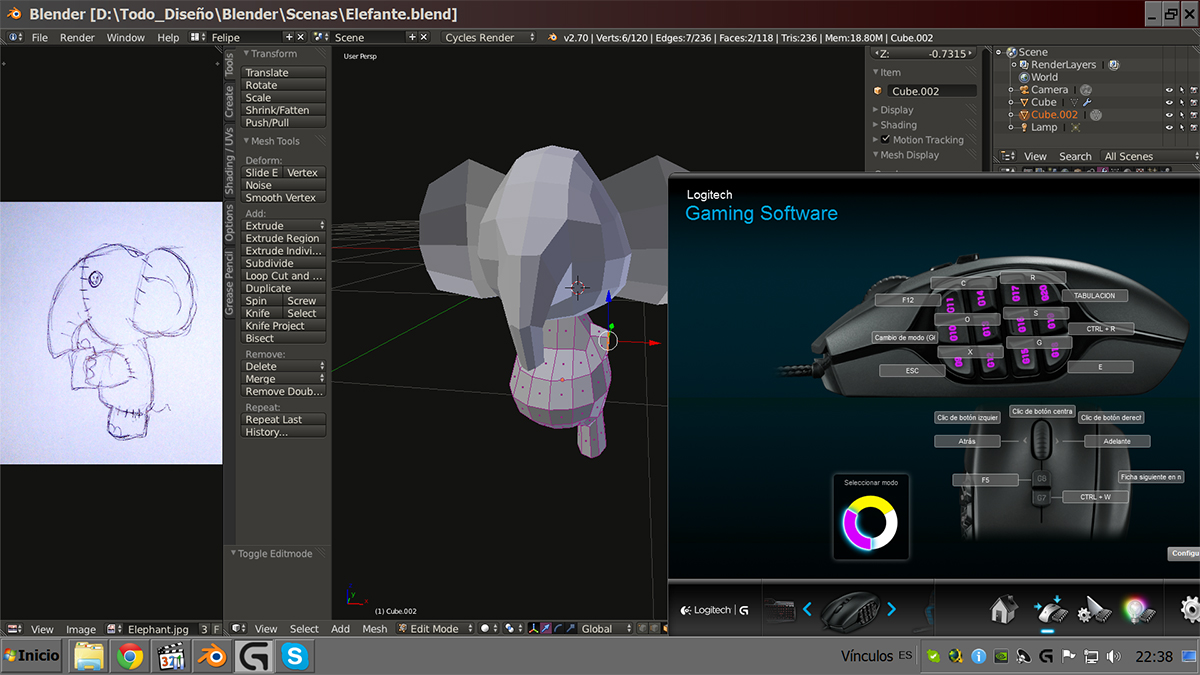 De todas formas, con un ratón y un teclado normal, Blender va el solo que te rula. Yo estuve un tiempo con teclado/ratón comprados por 1 euro en un chino y me funcionaban de maravilla. Luego se me fastidiaron, pero bueno; aguantan lo suyo. Esos tuyos para jugar en red deben ser muy útiles.