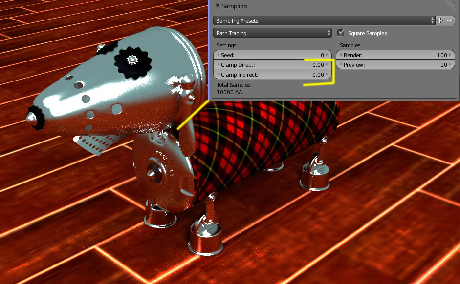 Si le cambio el valor de Clamp (tando el directo como el indirecto) me sale sin esos fallos, pero cambia un poco el resultado.