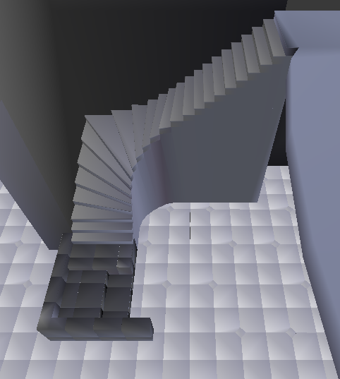 La escalera me dijeron que era demasiado empinada, así que, le cambié las escalas de X y Y de todo para qué guardasen proporción.