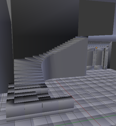 Y puede que lo veas raro, pues la textura de la parte de la escalera la tienes como estirada, no está bien UVMapeada. (creo).