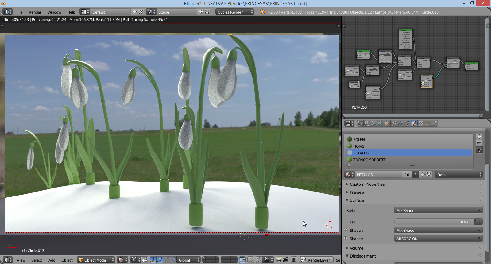 No tengo mucha experiencia con los materiales que usan el S así que, no lo usé casi, solo en los pétalos de las flores usé una mezcla de nodos que hasta me dio dolores de cabeza para lograr ese efecto, pero voy a probar. Gracias.