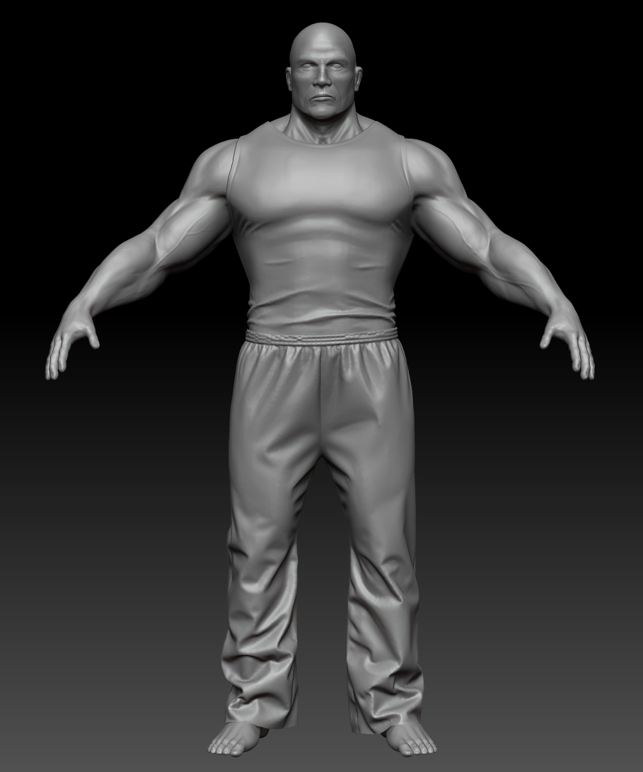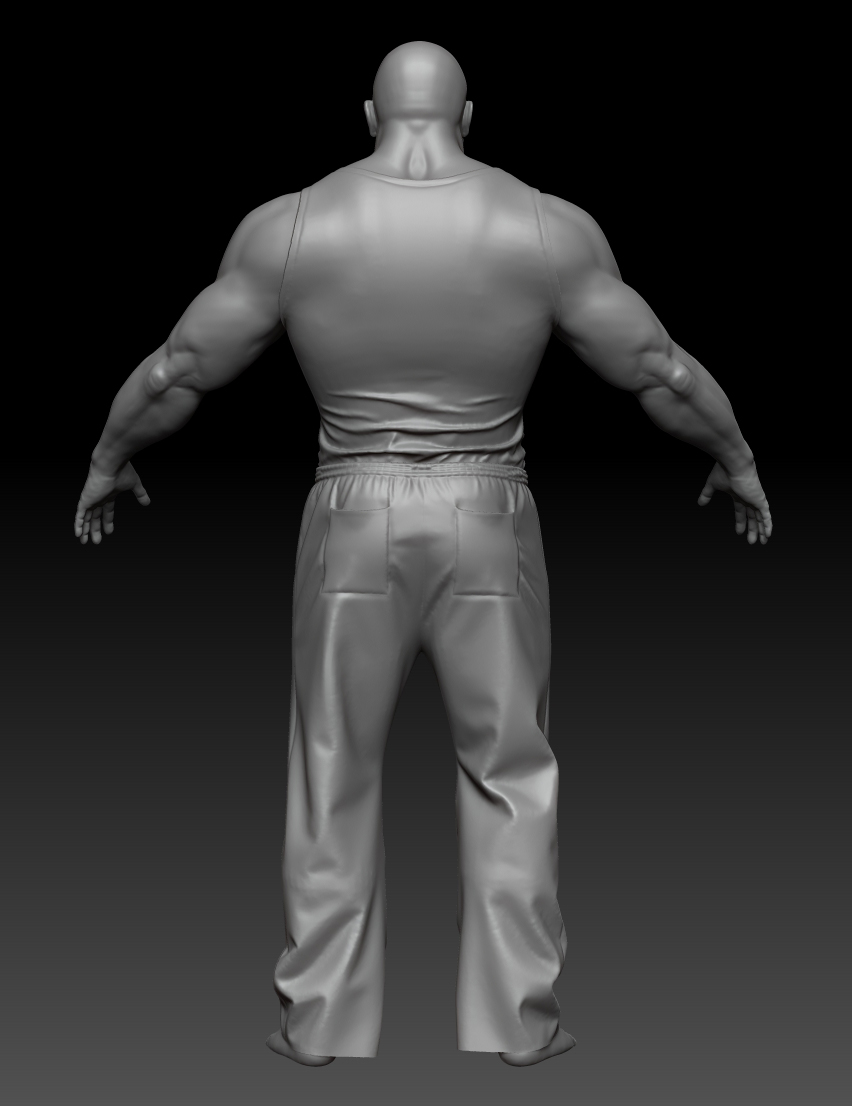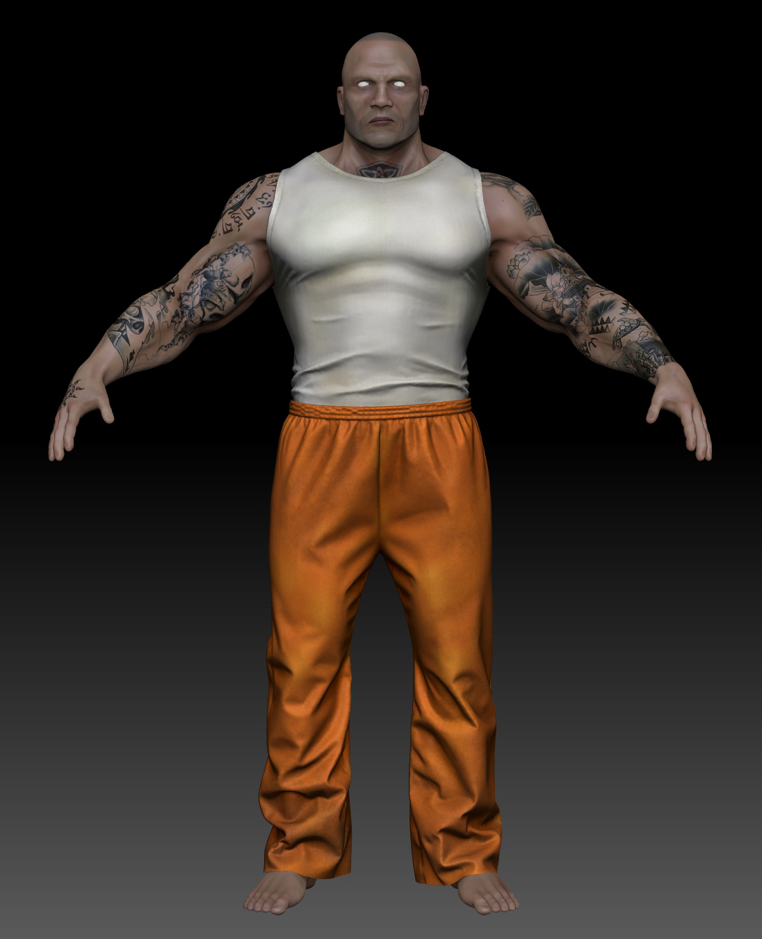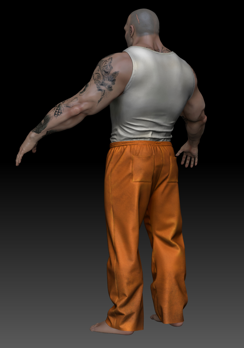 Actualizando. Le he puesto ropa, echa en Marvelous y retocada en ZBrush. Ahora a pintar el pantalón de naranja presidiario.