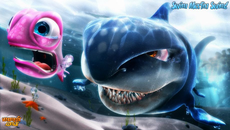 El otro día comentaba tu trabajo con Zonalunar. Le supo tremendamente mal que el pez las estuviera pasando tan canutas, y sugirió un giro muy interesante a la escena: merlín con cara de enfadado persiguiendo a un tiburón enorme y asustado. ¿te atrevés?