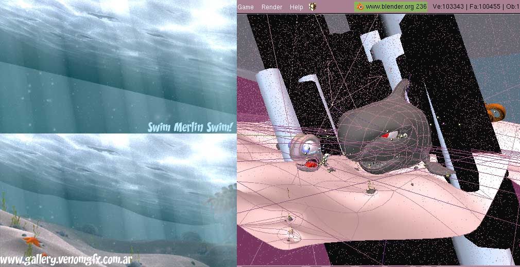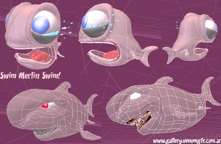 O algo así, hola otra vez, otra imagen. Hace poco más de un año hice la imagen de finding Nemo., pero perdí el (*.blend) (hagan backups, hagan backups), hace tiempo que quería hacer algo parecido, así que, bueno, últimamente estaba con un tiburón llamado tibolino (los 2 o 3 que visitan el apartado wips de mi sitio lo n), y otro personaje llamado Merlin, el pezcadito de una raza inventada creo, ni idea.