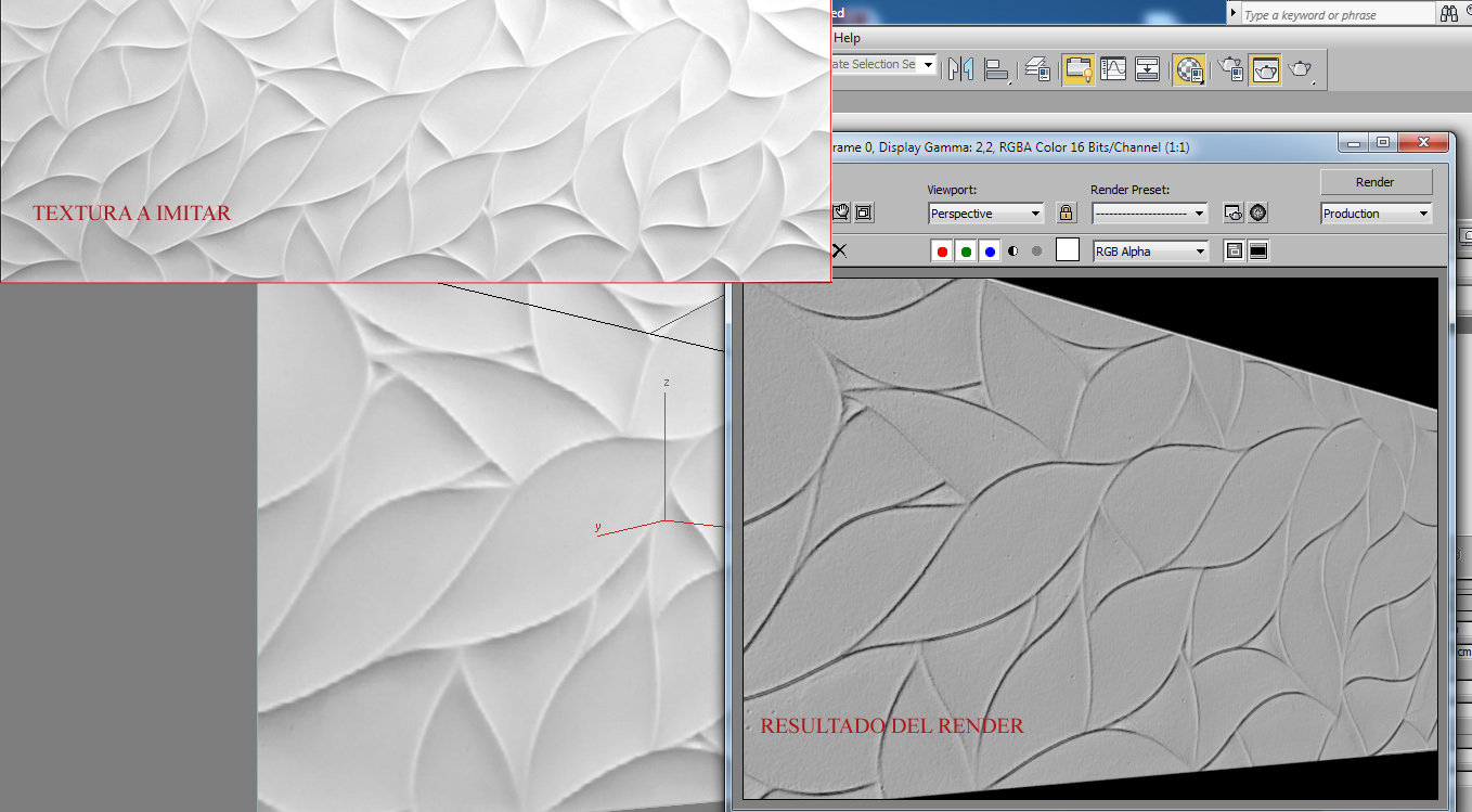 Hola a todos, querría pedir de nuevo vuestra ayuda. No sé cómo realizar el bump de esta textura de una forma correcta. He probado en Adobe Photoshop desaturando y aplicando la capa de ajuste de niveles para conseguir mayor contraste entre blancos y negros, pero no consigo el mismo suavizado. Al renderizar, el suavizado apenas se aprecia y quedan muy marcadas las líneas curvas a modo de nervios. He descartado el modelar la textura y aplicar el VrayZdepth por ser muy complicado y tedioso, porque entiendo que debe haber algún modo de conseguirlo de una manera más rápida y eficiente.