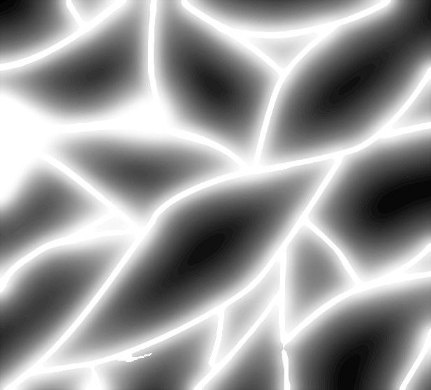 He intentado hacer algo parecido cogiendo parte de tu imagen, pintando las aristas en Adobe Photoshop con la pluma y aplicándole desenfoque. El resultado no es muy allá, pero creo que se podría conseguir algo bueno mediante está técnica. Aquí os dejo el mapa de desplazamiento que utilicé y como quedo.
