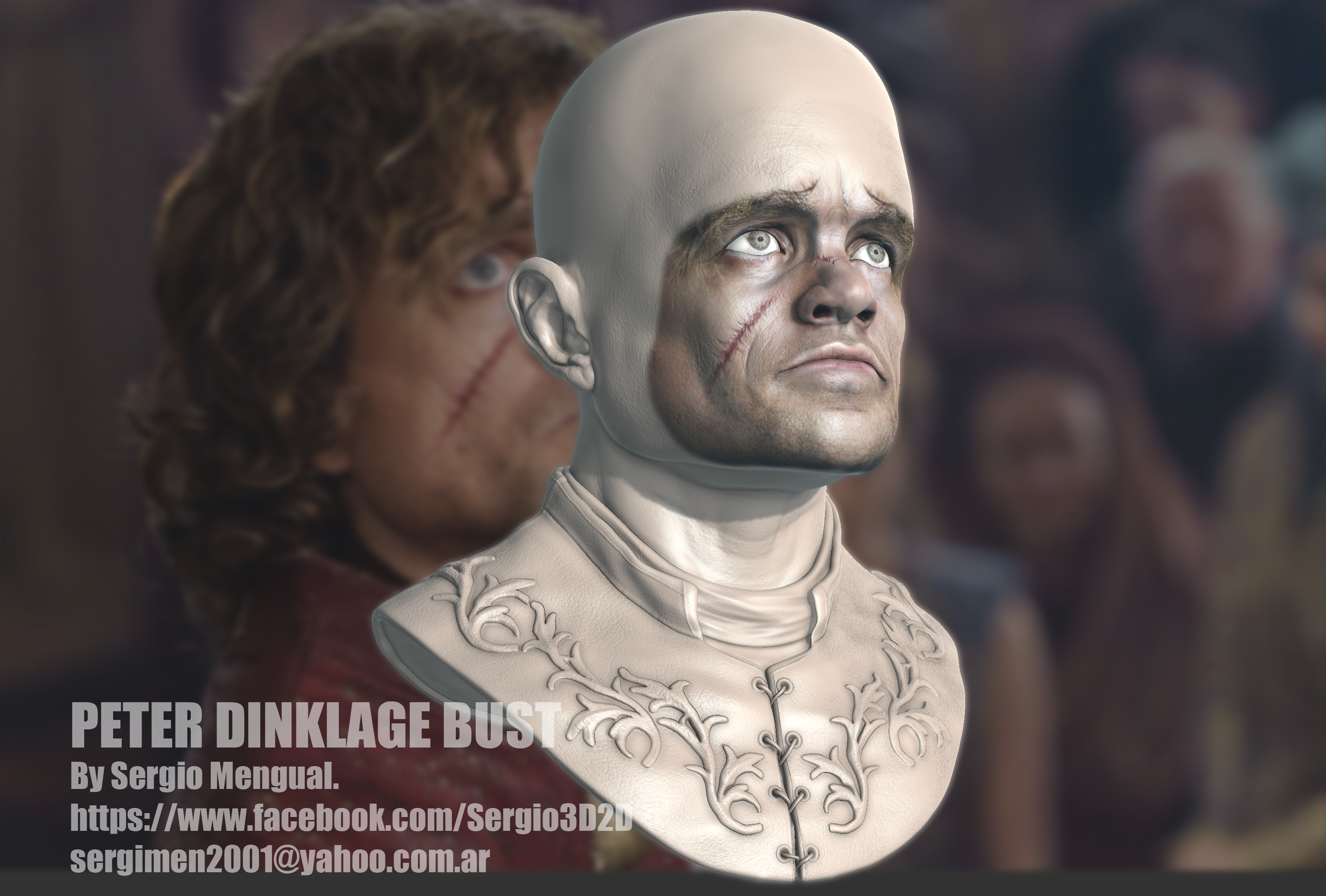 Bueno luego de cambiar la forma y mirar una y otra vez una fotografía y otra ya están bien las facciones. Solo me faltaría modelelarle el peinado alocado para tener un busto completo, que puede usarse para impresión 3D. Hice un rápido test tirando una difusa rápida con la herramienta Projection, y me sorprendió ver cómo todo caía en su lugar exacto, ojos, boca. Lo que sí luego voy a hacer una versión para MAX luego de hacer retopo: