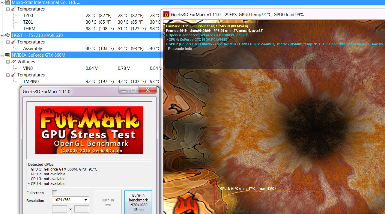 Y ya si te animas a hacer una segunda ronda, haz que corran a la vez Prime 95 y Furmark con las mismas condiciones. Eso sí, apaga el equipo para qué se enfríe un poco antes de pasarle la segunda ronda.