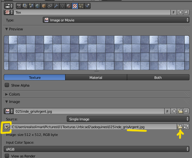 Cuando pones una textura de imagen se hace a través de una ruta donde le indicas las carpetas y por último el archivo.