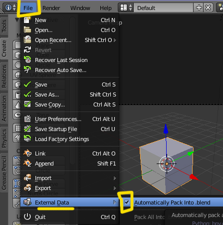 Esto te subirá el tamaño (pues sumara la textura) pero ya no lo perderás nunca y podrás mandárselo a otra persona, pues ira la textura dentro del blend.