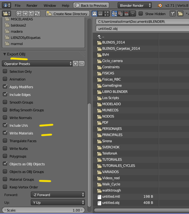Cuando se exporta desde Blender un objeto en formato OBJ se crean dos archivos. Uno con la extensión (*.obj) y otro con la extensión.mtl
