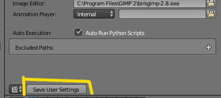 Una vez activada la nueva configuración se guarda presionando Save User Settings.