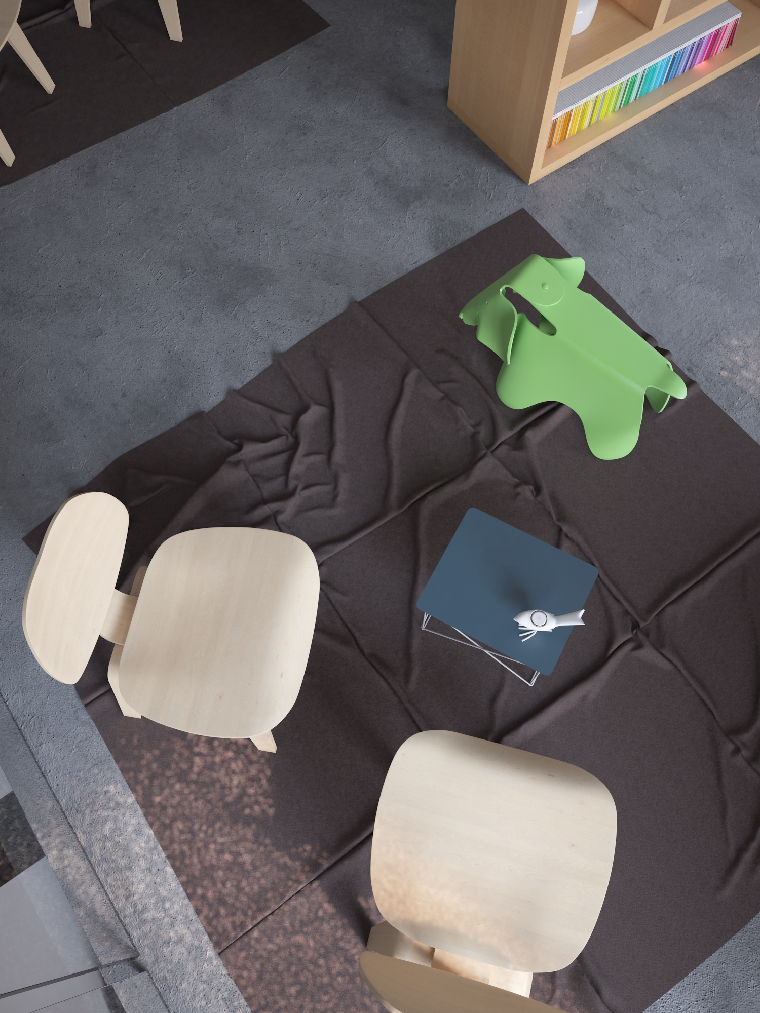 La escena esta iluminada con una VrayDome (intensidad 100) con VrayPlanes (Skyportal) en las ventanas. La VrayDome ilumina con un HDRI de la familia Peter Guthrie. Tiene una resolución de unos 7000 x 3000.