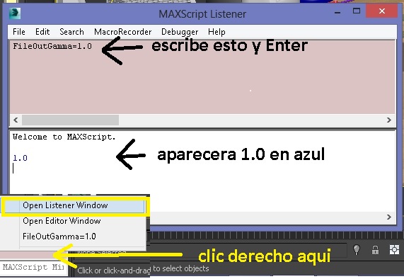 Lo otro es trabajar con gamma a 2.2. En max 2014 se debe hacer lo siguiente para la salida de archivo a 1.0.
