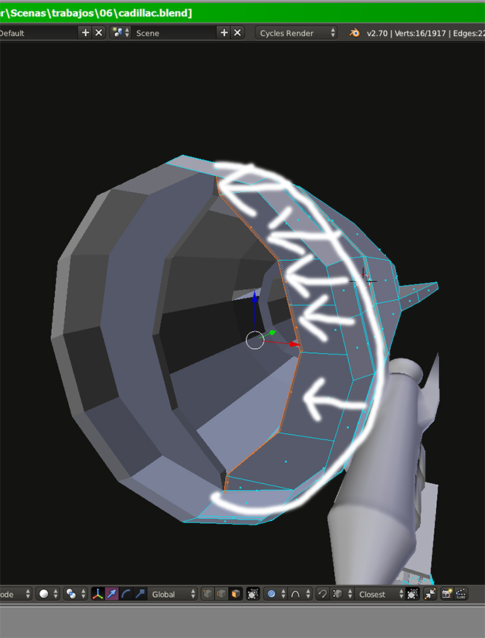 Hola, intento hacer un escalado de la extrusión de un círculo. Como se ve en la imagen que vértices toman un origen en coun y no vacomo puyedo hacer para qcerrarlo, o al menos que mantengan un orden que vayan todos al centro-