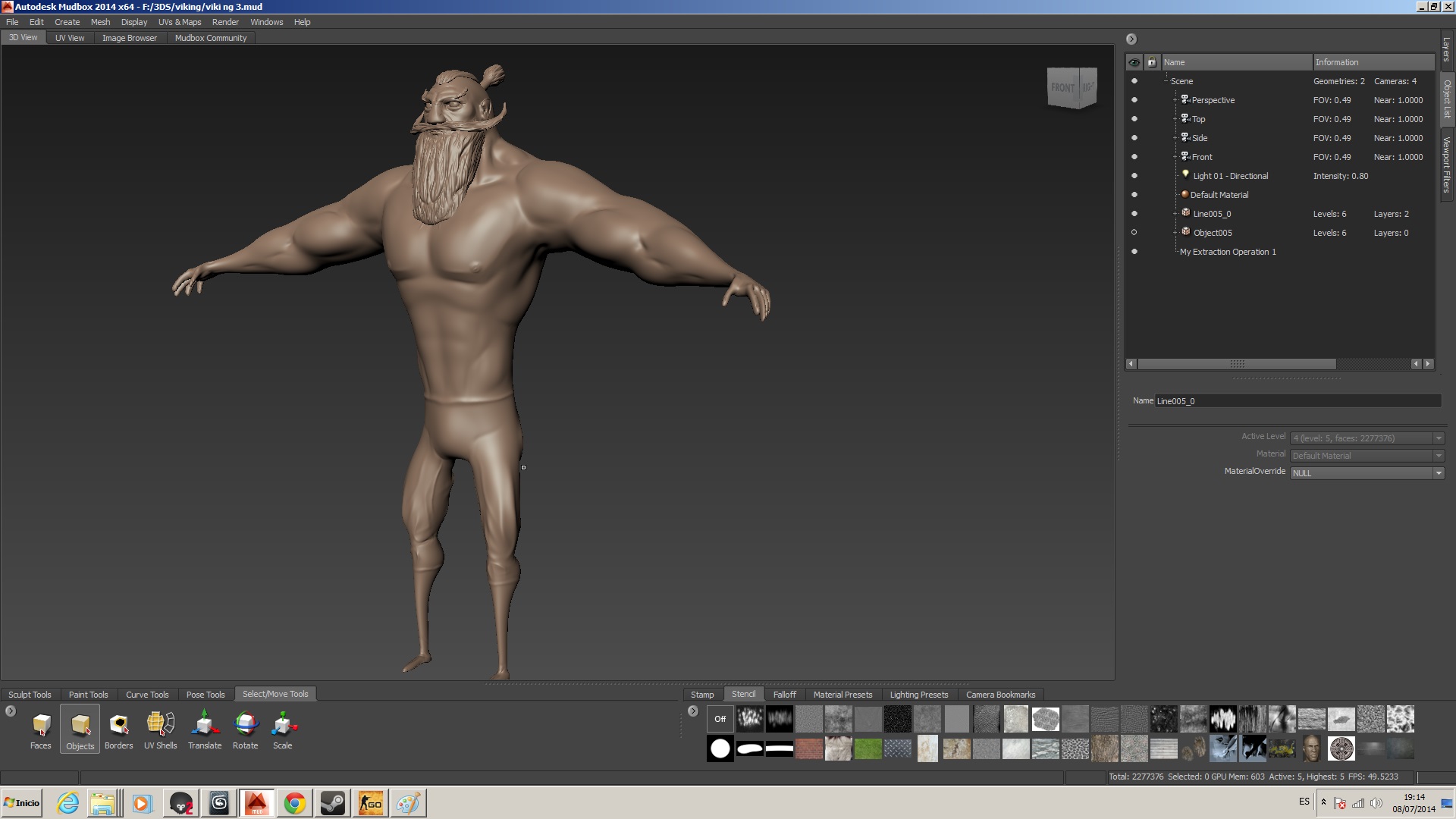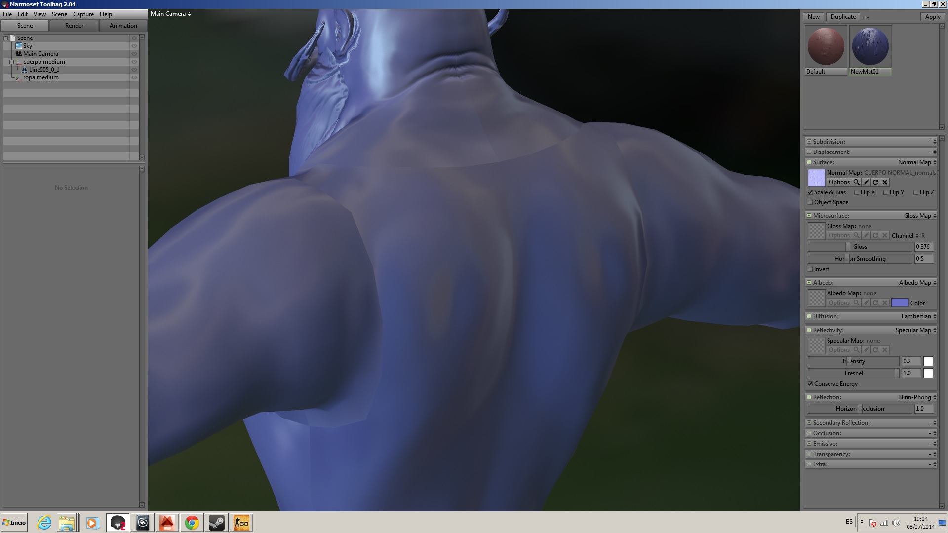 Ahora al haber modificado las Uvs, creo que tendré que volver a sculpir en Mudbox, o probar a importarle las Uvs, o esculpir usando un mapa de desplazamiento, a ver lo que sale. Muchas gracias.