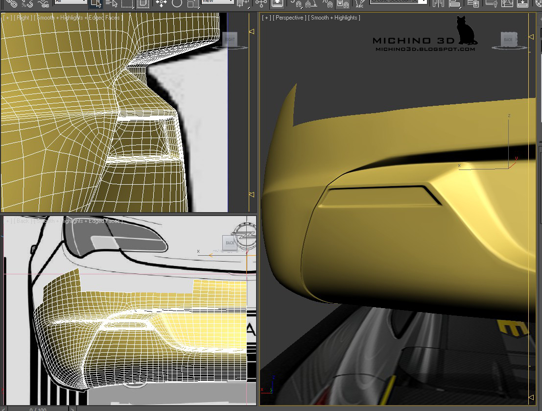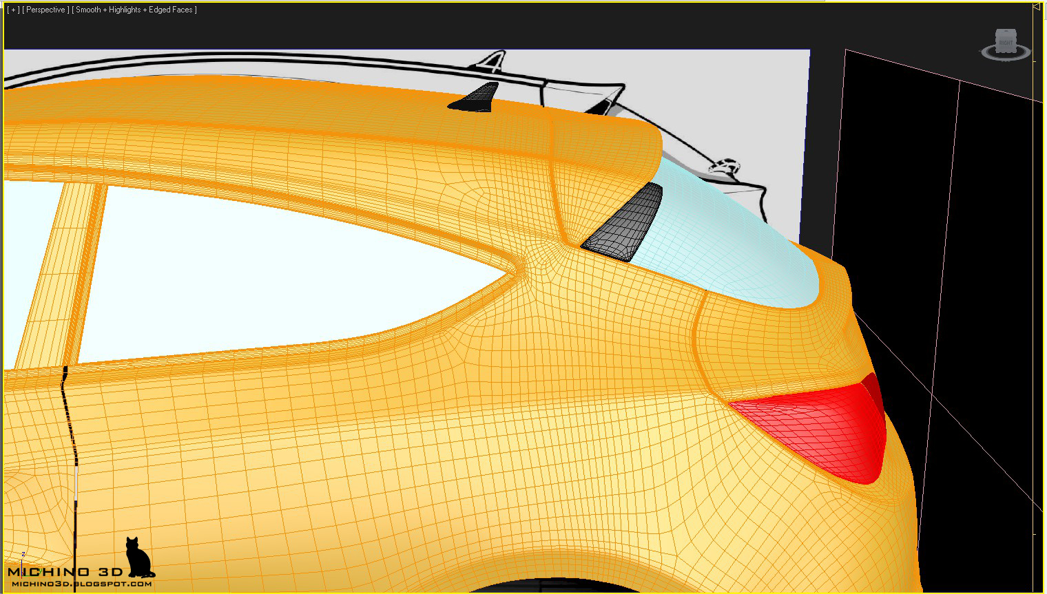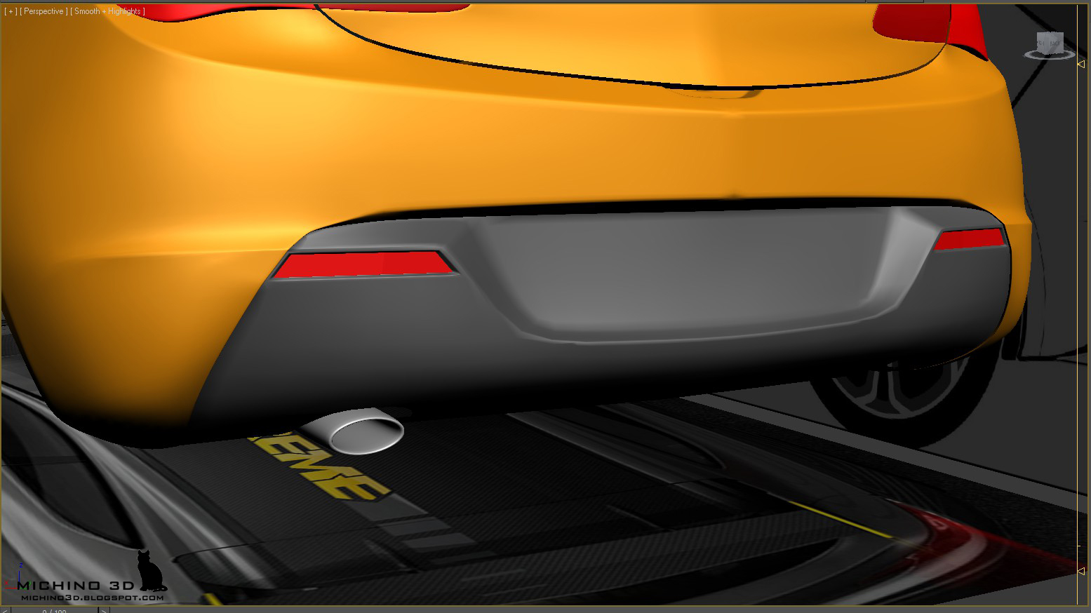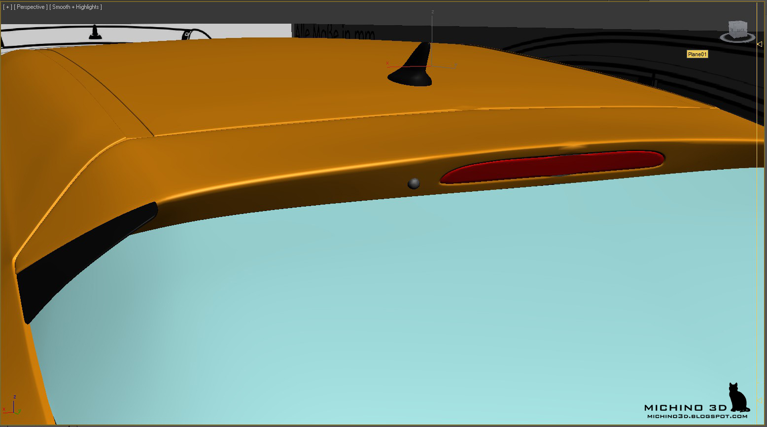 Bueno pues después de un montón de tiempo sin pasarme por aquí, me apetecía compartir este trabajo que estoy haciendo, llevo un mes con él ya que sólo le dedico a esto del 3d alguna tarde, y me está costando bastante porque es lo primero que modelo únicamente en 3DS Max, es mi primer coche, y encima no tengo el blueprints de la parte de arriba. Para colmo el coche es complicado de coj, no tiene ni una línea recta, pero con eso de que es el coche que tengo me hacía ilusión modelar, bueno ahí va mi progreso hasta ahora, espero os guste, por supuesto se aceptan todo tipo de críticas constructivas y destructivas.