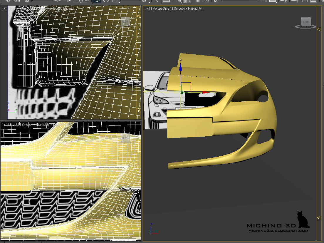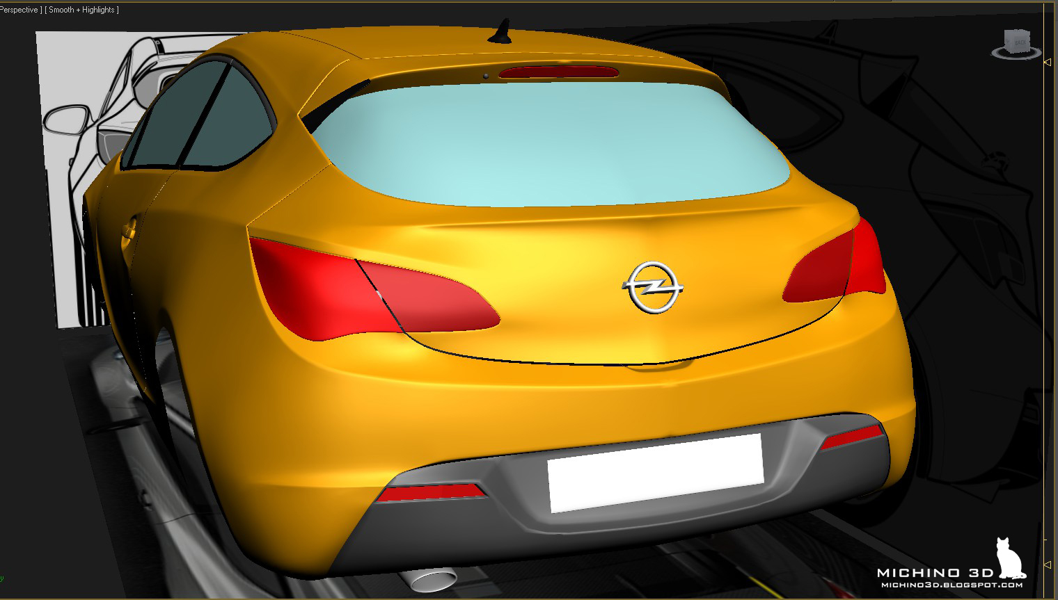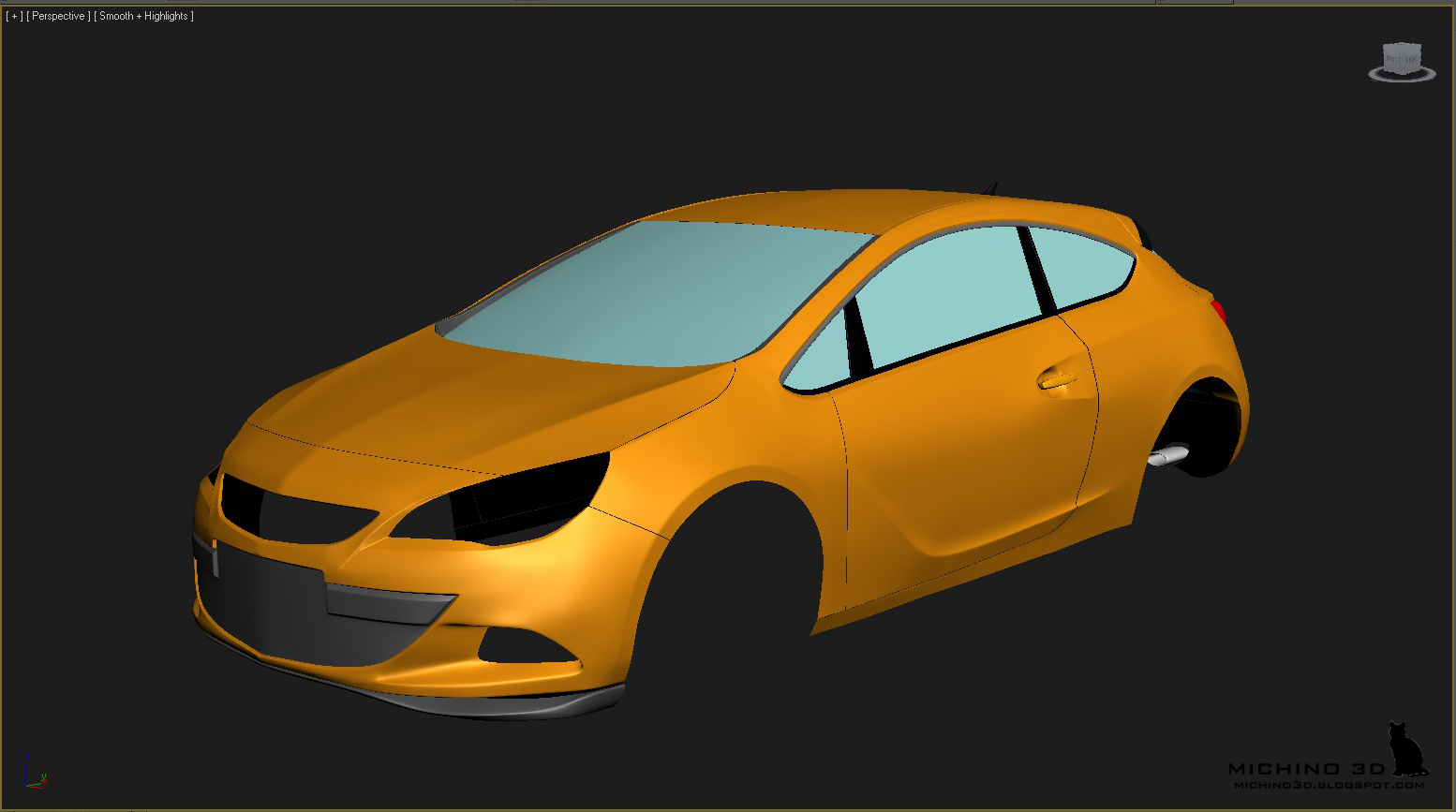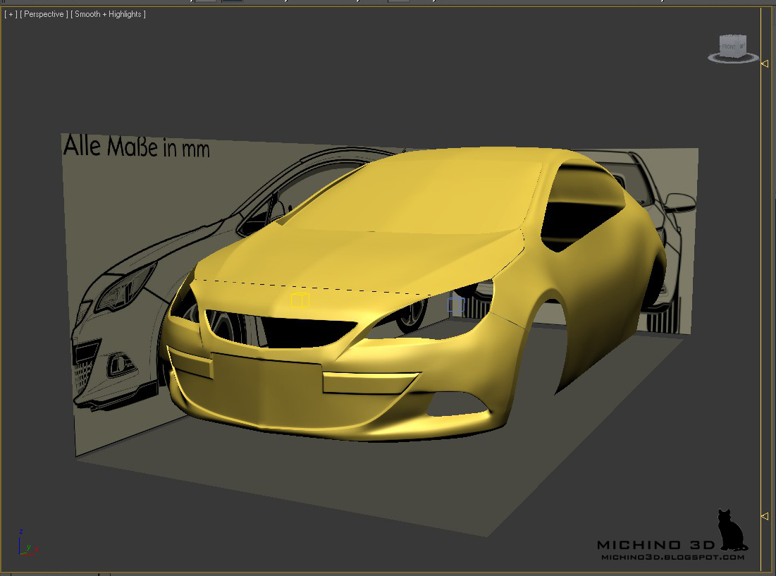 Bueno pues después de un montón de tiempo sin pasarme por aquí, me apetecía compartir este trabajo que estoy haciendo, llevo un mes con él ya que sólo le dedico a esto del 3d alguna tarde, y me está costando bastante porque es lo primero que modelo únicamente en 3DS Max, es mi primer coche, y encima no tengo el blueprints de la parte de arriba. Para colmo el coche es complicado de coj, no tiene ni una línea recta, pero con eso de que es el coche que tengo me hacía ilusión modelar, bueno ahí va mi progreso hasta ahora, espero os guste, por supuesto se aceptan todo tipo de críticas constructivas y destructivas.