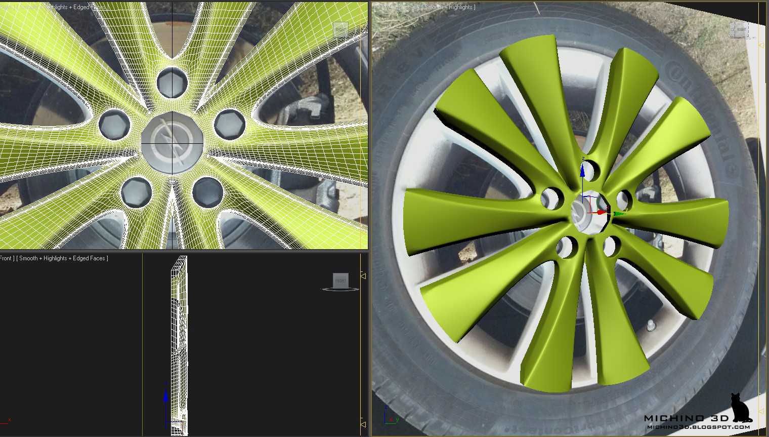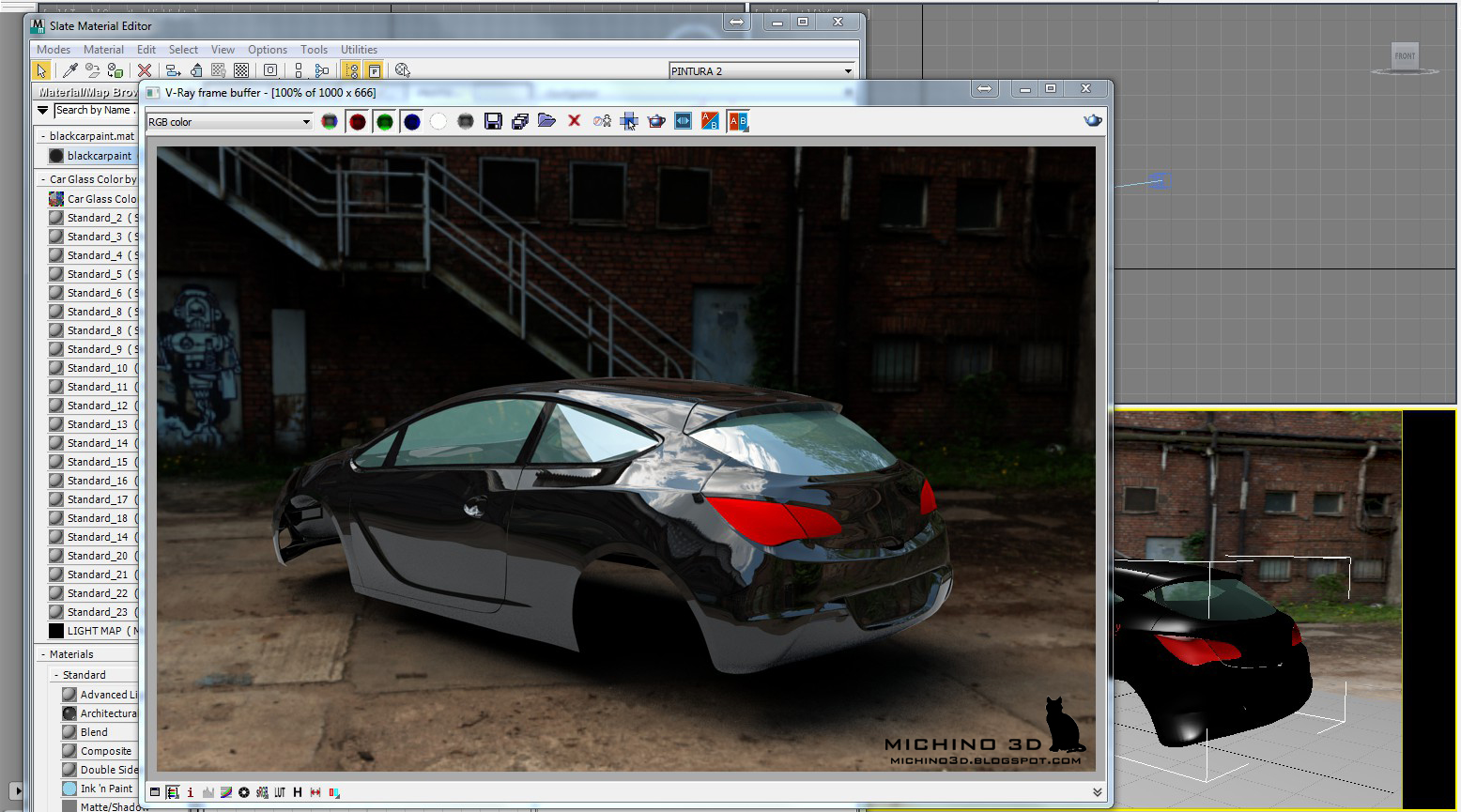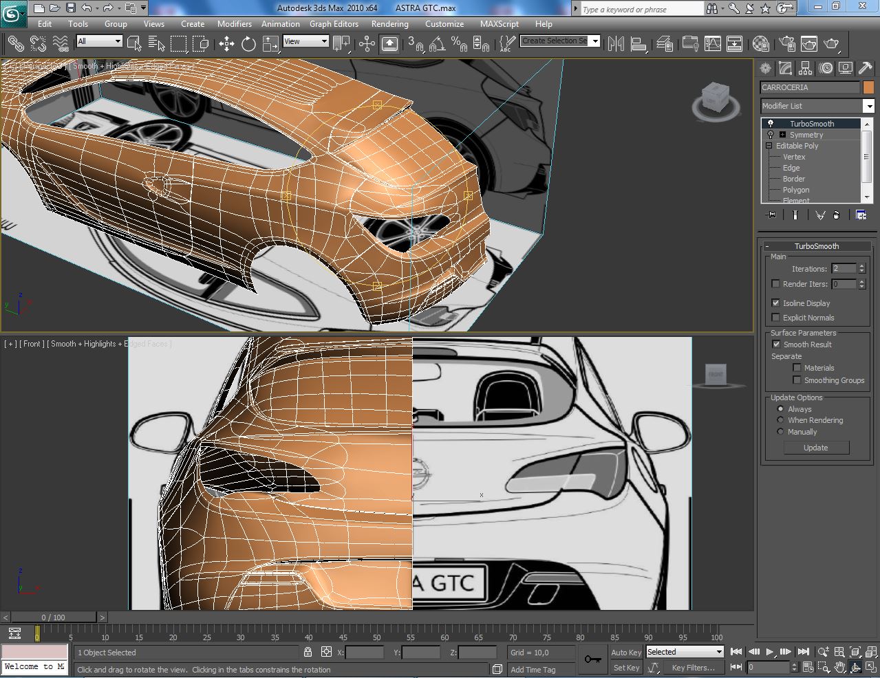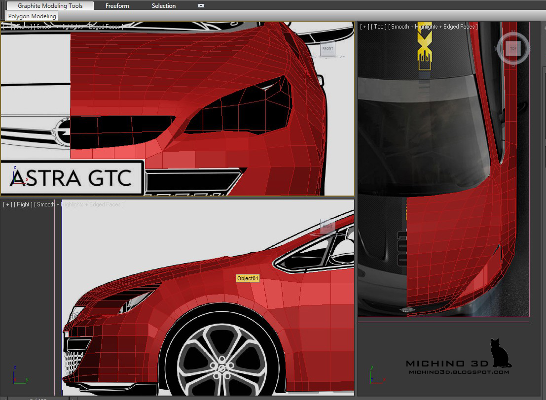 Bueno pues después de un montón de tiempo sin pasarme por aquí, me apetecía compartir este trabajo que estoy haciendo, llevo un mes con él ya que sólo le dedico a esto del 3d alguna tarde, y me está costando bastante porque es lo primero que modelo únicamente en 3DS Max, es mi primer coche, y encima no tengo el blueprints de la parte de arriba. Para colmo el coche es complicado de coj, no tiene ni una línea recta, pero con eso de que es el coche que tengo me hacía ilusión modelar, bueno ahí va mi progreso hasta ahora, espero os guste, por supuesto se aceptan todo tipo de críticas constructivas y destructivas.