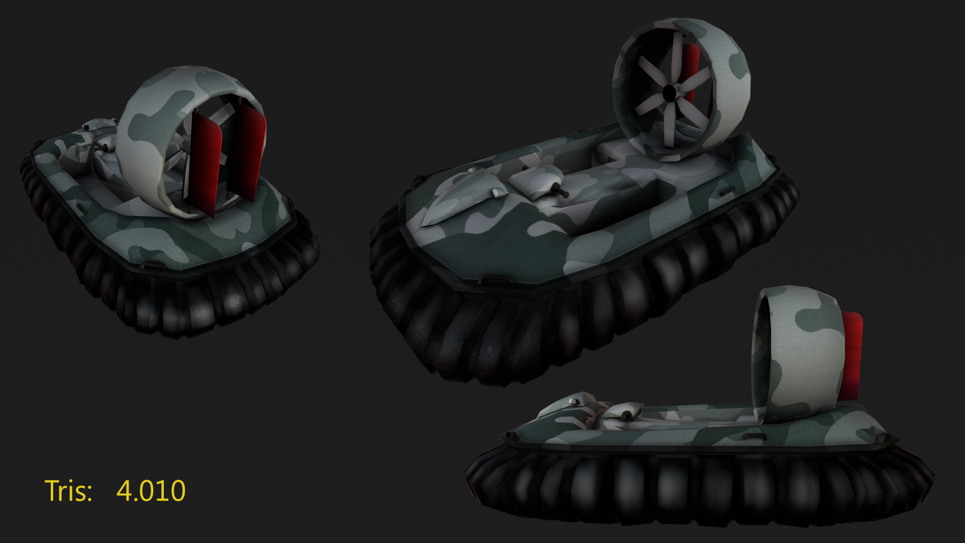 Ya lo probé en el juego y queda perfecto, además probé a cambiar la tinta del material para hacer distintos hovercrafts con el mismo modelo y queda más o menos decente.