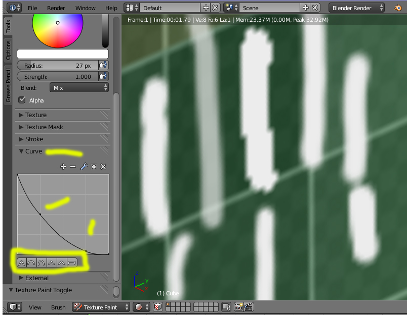 Prueba a cambiar los valores de Curve. Según sea la curva pinta más o menos con los bordes difuminados.