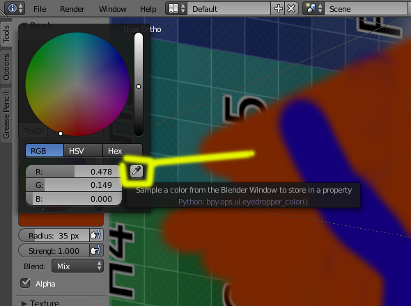 Soliman, la imagen (*.png) de la textura se actualiza a tiempo real, lo que no entiendo es porque pinta tan mal, como píxeles separados. El tamaño del brush esta a 9px, y tampoco entiendo que tenga tanto diente de sierra.