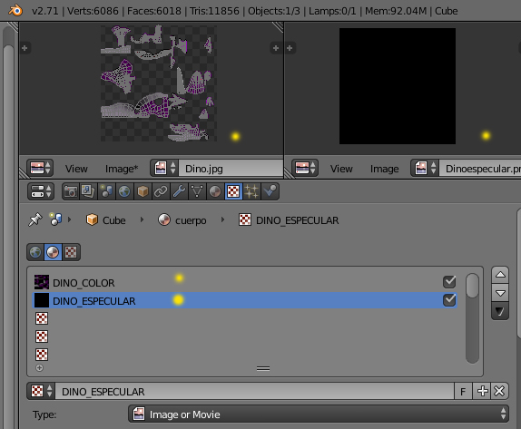 Si tienes una textura especular, ponle el nombre tanto a la textura (imagen) a la textura (programa) y al UV, en el caso de que hubiera dos, lo mismo.
