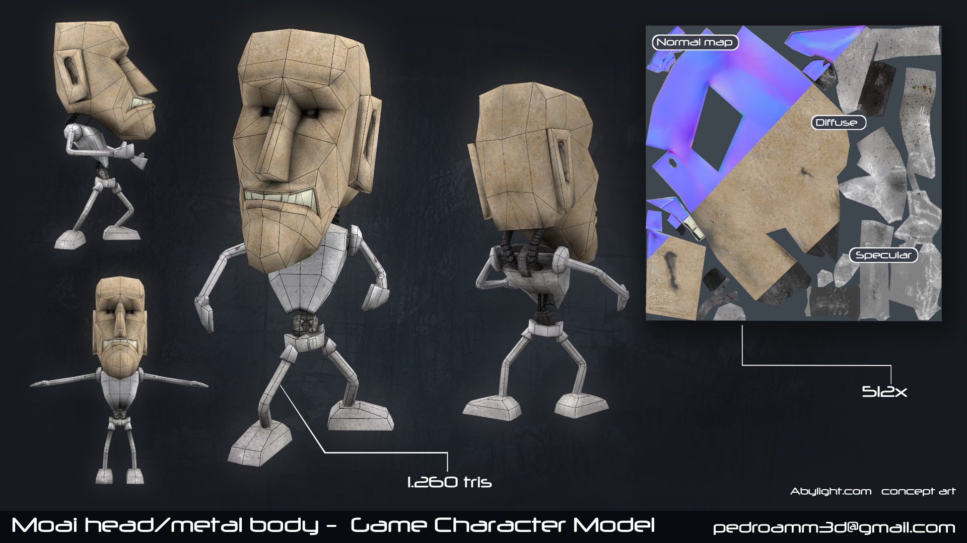 Hola. Yo también hice la prueba de Abylight, y puedo ayudar con mi punto de vista a los que también han hecho la prueba y no han logrado superarla. Yo también he visto una gran variedad de personajes parecidos, pero no del todo similares. A mi entender, la prueba consiste en modelar el personaje lo más parecido al boceto 2D que entregan (es un boceto algo complicado porque el personaje no está mirando al frente o de lado, sino con un cierto ángulo, con lo que no te sirve la imagen para colocarla de fondo en el 3DStudio Max y guiarte con ella). He visto muchos modelos simpáticos por ahí, pero no se trata de hacerlo bonito, sino que se parezca lo más posible al original, ya qué existe un ilustrador que dibuja los bocetos que luego el modelador tiene que pasar a 3D. Si el modelo al final no se parece en nada o muy poco, entonces, ¿de qué vale el artista ilustrador en el equipo? También otra limitación es la ya conocida de un máximo de 1000 polígonos. Modelar un personaje con pocos polígonos es un arte, ya que hay que racanear muchísimo en polígonos, pero a la vez sin perder detalle. Por aquí he visto algunos modelos que necesitaban más polígonos y otros que necesitaban un poco menos, aunque mayormente en ese aspecto casi todos están bastante bien.