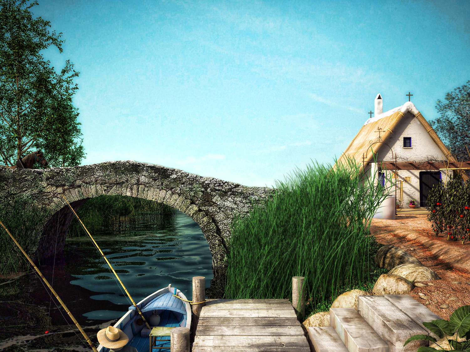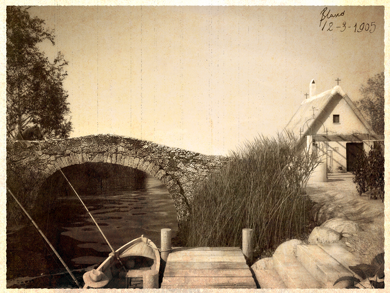 Adjunto también el render original del rio antes de convertirlo en fotografía antigua o pintura. Saludos.