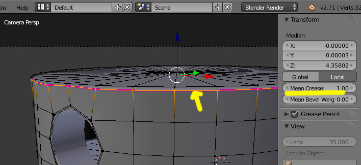 Y si la parte de los bordes superiores lo que quieres es que queden más afilados, y no utilizas el modificador Edge Split, puedes utilizar el Mean Crease.