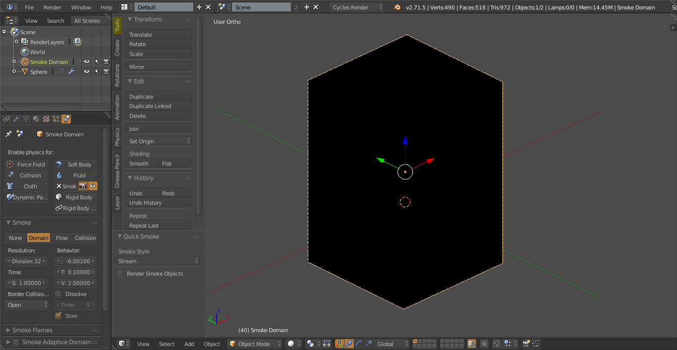 Pues eso que me quema. No consigo que funcione el humo, ni en Cycles ni en el interno. Se me queda negro y punto. Me gustaría meterle a una escena mía este tipo de físicas, pero no sé qué le pasa. A ver si a alguien le ha pasado algo así. Lastima. Saludos.